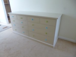 Shaker painter chest. Customers supplied knobs.