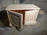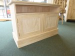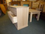Knotless wood – Radiata. May 23. This is a farmed wood with no knots. Works much cheaper then using Oak. We can buy this 18mm and 25mm thick. It can be used to make all styles of furniture but we have no supplier of turned legs or architrave in this wood. As a rule of thumb we take a normal price for an item in Redwood pine and add 30% . This covers the cost of using knotless wood.Work content is the same as working in Redwood. See pictures in the other sections for ideas of what can be made. Can be stained any colour. Looks very good as a top on a painted unit.
