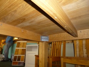 Oak table with leg detail.
